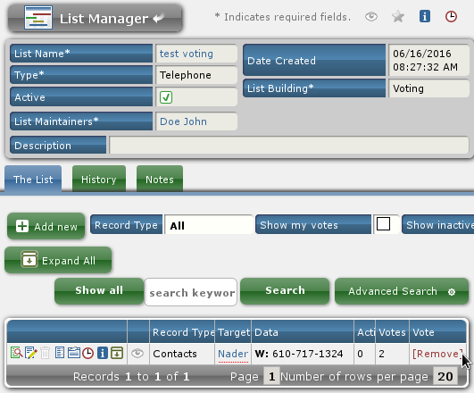 Similar to a regular list building in the way that you add elements manually. The vote list building gives you the right to vote to add or remove the element from the list. The ‘votes’ field counts all the votes to add, if everyone votes to remove the element will be removed.